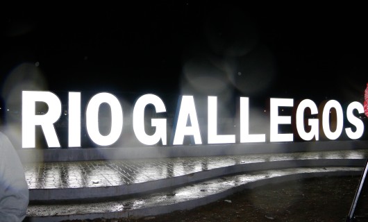 Rio Gallegos | Color y alegra se manifiestan en un recibimiento ameno para quienes arriban a nuestra ciudad y se encuentran con el cartel luminoso de bienvenida que esta noche el intendente Pablo Grasso encendi acompaado por la comunidad bajo una intensa lluvia.