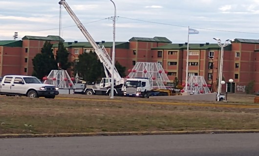 Rio Gallegos | La rotonda Samor de esta capital es el escenario de un importante operativo en estos momentos, a fin de emplazar el tradicional rbol de Navidad de Ro Gallegos.