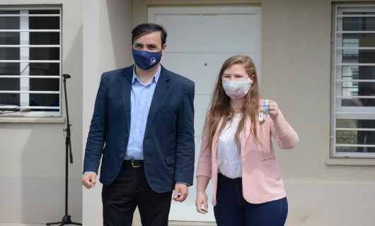 Rio Gallegos | El Gobierno de Santa Cruz representado por el ministro de Gobierno, Leandro Zuliani; y el presidente de la Administracin General de Vialidad Provincial, Mauricio Gmez Bull, acompa al intendente de Ro Gallegos, Pablo Grasso, en la entrega de viviendas del Plan Procrear.