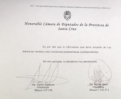 Con fecha de ayer, los diputados Daniel Gardonio y Matias Mazú presentaron una nota, informando a Pablo González, quien preside la Cámara de Diputados que el pacto fiscal no será tratado en el recinto.