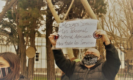 Rio Gallegos | Esta maana, en el marco de la jornada nacional por sueldos dignos del sector de enfermera, y la profesionalizacin, Manuel Piris manifest frente a Casa de Gobierno: Decidimos hacer una nota, y pedir una audiencia con la Gobernadora, con los puntos que se estn tratando, porque sentimos que no nos escuchan.