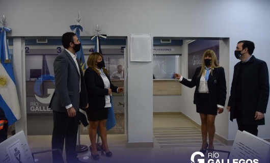 Rio Gallegos | En una ceremonia realizada hoy con transmisin por redes sociales, el Intendente Pablo Grasso junto a autoridades provinciales y empleados municipales dej inaugurada la remodelacin integral del saln principal de atencin al pblico y de las oficinas de la direccin de recaudaciones y de la tesorera municipal, ubicadas en el edificio central.