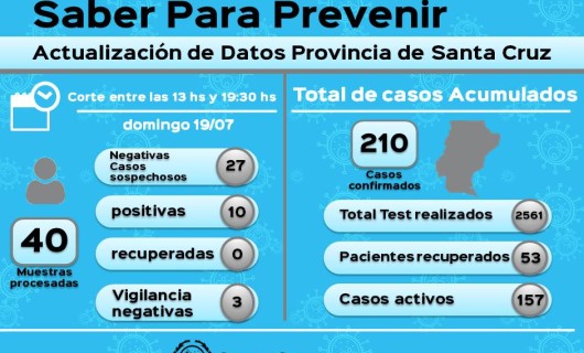 Rio Gallegos | Junto a los 29 que sealaron las autoridades sanitarias de Provincia, este domingo se contabilizan 39 casos confirmados de COVID 19, resultando hasta hoy 152 personas que dieron positivo.