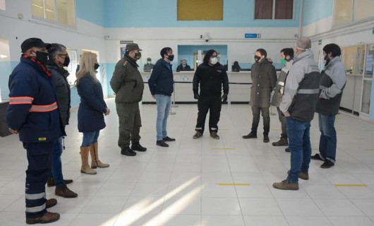 Rio Gallegos | Hoy una comitiva integrada por el Ministro de Gobierno, Leandro Zuliani; el Jefe de la Regin VII de Gendarmera, Guillermo Oscar Danielle; el responsable de Migraciones Delegacin Santa Cruz, Gonzalo Chute; el intendente de Ro Gallegos, Pablo Grasso junto a personal de Obras Pblicas del Municipio; el Delegado regional de la CNRT, Diego Calabrese; y el Diputado por Pueblo de la capital provincial, Eloy Echaz; visitaron el lugar para verificar el cumplimiento de procedimientos y protocolos, como as tambin el avance de las mejoras a las que el jefe comunal se haba comprometido en anteriores recorridas.