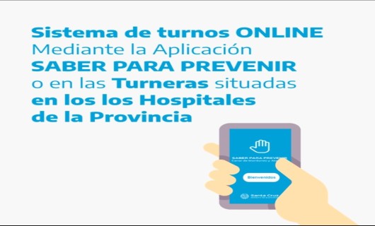 Rio Gallegos | El Gobierno de Santa Cruz a travs del Ministerio de Salud y Ambiente contina con el proceso de modernizacin de los sistemas de salud. En esta oportunidad se presenta el sistema de turnos online, los cuales podrn solicitarse mediante la APP Saber para Prevenir o en las turneras situadas en los hospitales de la provincia.
