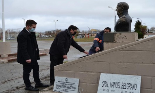 Rio Gallegos | Se procedi a la restauracin total del busto del prcer argentino y colocacin de nuevas placas por conmemorarse el Bicentenario de su paso a la inmortalidad.