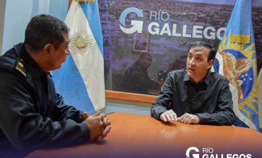 Rio Gallegos | En horas de la maana, el Intendente Pablo Grasso recibi en su despacho al nuevo jefe de departamento Escuela de Cadetes de Polica de Santa Cruz Eduardo Victoriano Taret, Comisario Inspector Daro Mathias.