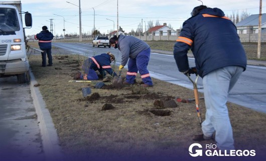 Rio Gallegos | En horas de la maana, personal de la Direccin de Espacios Verdes se dirigi al boulevard de la Avenida Riquez, para realizar la colocacin de ms de 70 ejemplares de retamas.