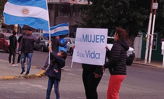 Rio Gallegos | Silvia Colarte, junto al grupo Pro Vida visibilizaron su rechazo al aborto en la avenida cntrica de la ciudad de Ro Gallegos, en consonancia con una convocatoria de la Iglesia, para participar de una misa Pro Vida este ltimo domingo, en coincidencia con el da de la mujer. A cien metros se movilizaban las mujeres que estn a favor del aborto seguro, legal y gratuito.