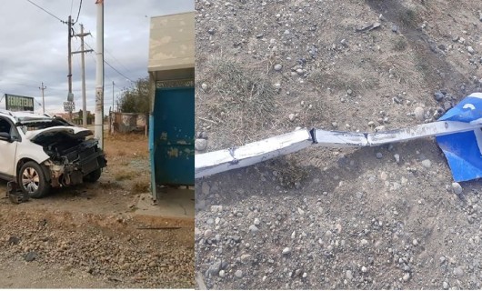 Rio Gallegos | Esta maana, un vehculo result daado en su parte frontal, luego de llevarse por delante algunos carteles nomencladores a su paso. Los ocupantes fueron trasladados al nosocomio local.
