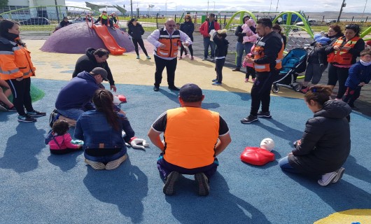 Rio Gallegos | El Gobierno de Santa Cruz,a travs de la Subsecretara de Proteccin Civil y Abordaje Integral de Emergencias y Catstrofes del Ministerio de Seguridad, se llev adelante una capacitacin abierta de Primeros Auxilios y RCP en el parque Pirincho Roquel de Ro Gallegos.