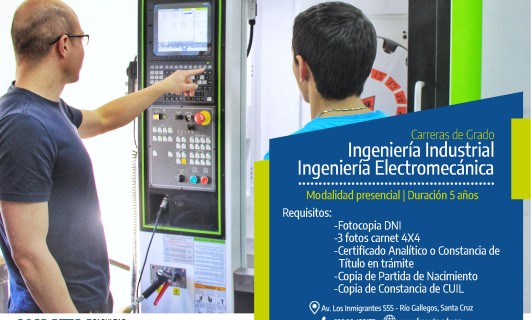 Rio Gallegos | La Facultad Regional Santa Cruz extendi los plazos hasta el prximo viernes 20 de diciembre para la presentacin de los requisitos a cursar las carreras de Ingeniera Industrial y Electromecnica. Luego, quedan preinscriptos al Seminario de Vinculacin que comienza el mircoles 5 de febrero del 2020.