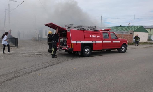 Rio Gallegos | Esta tarde,una autobomba, con apoyo hidrico acudi al pasaje San Mateo y 17 de Octubre, en el Barrio 499 de la ciudad de Ro Gallegos. Las perdidas materiales fueron importantes, pero afortunadamente ambas familias resultaron ilesas.