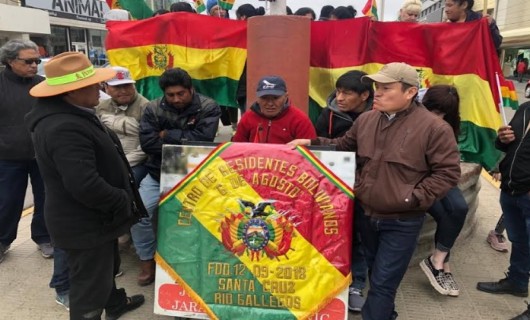 Rio Gallegos | Parte de la nueva Comisin Directiva de ATE Santa Cruz una nueva convocatoria de la comunidad boliviana por la paz en Bolivia y contra el golpe de estado cvico militar que impuso un poder de facto obligando a la renuncia de Evo Morales.