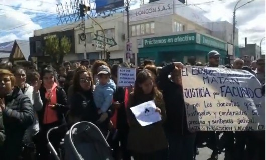 Rio Gallegos | Indico Aloz, integrante de ADOSAC que junto a sus pares seal a la cartera educativa como responsable de la muerte de Daz, as como reclamaron justicia .
