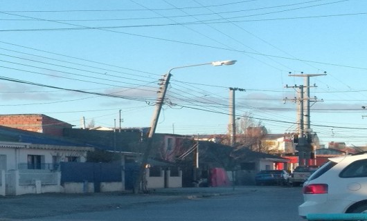 Rio Gallegos | Este sbado, vecinos de la calle Vilcapugio de la ciudad de Ro Gallegos subieron a las redes sociales, imgenes de un poste del alumbrado elctrico,a punto de desplomarse.