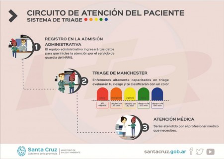 Rio Gallegos | El Gobierno de Santa Cruz a travs del Ministerio de Salud y Ambiente lanz el nuevo sistema de Triage de Guardia para el Hospital Regional Ro Gallegos con el objetivo de mejorar la calidad y agilizar la atencin de los pacientes en la guardia en la que circulan ms de 2500 personas al mes.