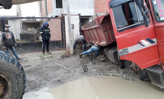 Rio Gallegos | Integrantes de Vialidad Provincial asistieron a un camin que qued encajado en la calle Albert Sabin de la ciudad de Ro Gallegos. Es evidente que la falta de mantenimiento de las calles permiten que estos accidentes se reiteren en distintos puntos de la capital de Santa Cruz.