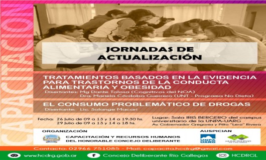 Rio Gallegos | Bajo la organizacin del rea de Capacitacin y Recursos Humanos del Concejo Deliberante, se desarrollarn jornadas de actualizacin en Tratamientos basados en la evidencia para trastornos de la conducta alimentaria y obesidad, como as tambin en el consumo problemtico de drogas.