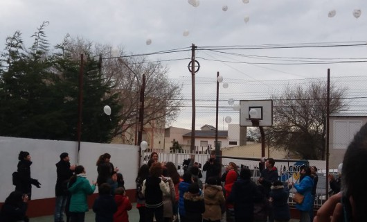 Rio Gallegos | Con un abrazo simblico y una suelta de globos de color blanco con mensajes al cielo, alumnos del Poplars School, homenajearon a Luana Gualdesi, la pequea que perdi la vida junto a sus padres en un fatal accidente ocurrido la maana del sbado, en la Bajada de Miguez.