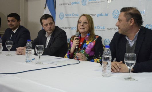 Rio Gallegos | La gobernadora encabez el acto de presentacin del nuevo Equipamiento Informtico para las distintas dependencias de la Polica de la Provincia de Santa Cruz; adems se entregaron los nuevos vehculos para las distintas direcciones generales del Ministerio de Trabajo, Empleo y Seguridad Social. Destac el trabajo en equipo y la planificacin estratgica que han permitido el ordenamiento del Estado. Adems expres sus condolencias por el fallecimiento del fiscal Gustavo Cima.