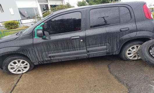 Rio Gallegos | La lluvia es un fenmeno meteorolgico que en Gallegos genera situaciones atpicas, como el que sucedi esta tarde en plena avenida San Martn cuando al atravesar uno de los tantos pozos que hay en la ciudad, da dos de las cubiertas de su automvil
