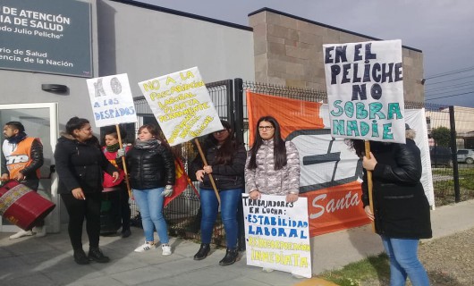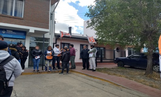 Rio Gallegos | Cerca del medioda se manifestaron frente a la delegacin de Trabajo de Nacin, en rechazo a su desafectacin del Peliche, de manera sorpresiva y sin mediar explicacin alguna, ni del municipio, ni de Nacin.