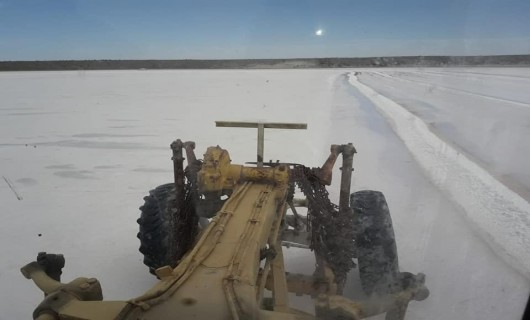 Rio Gallegos | Por cuarto ao consecutivo, personal del Distrito Vial Puerto Deseado inici el acopio de sal para la temporada invernal 2019, en una salina situada en la Ruta Pcial. N 68, aproximadamente a 6 km de la Estancia 36.