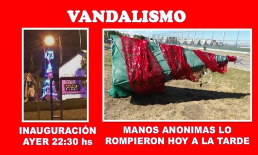 Rio Gallegos | Los vecinos del Barrio Gaucho Rivero, se vieron consternados cuando a las pocas horas de encender el arbolito de esa comunidad, termin siendo el objetivo de inadaptados que lo destrozaron.