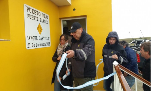 Rio Gallegos | En horas de la maana, el presidente de la Administracin General de Vialidad Provincial Ing. Francisco Anglesio, el Jefe del Distrito Vial Ro Gallegos Facundo Casal y el Jefe de la Delegacin Vial 28 de Noviembre Javier Delgado llevaron a cabo un emotivo corte de cinta que dio por inaugurado el Puesto Fijo de Puente Blanco "Maquinista ngel Castillo". Su construccin era un sueo que hoy se ve cumplido.