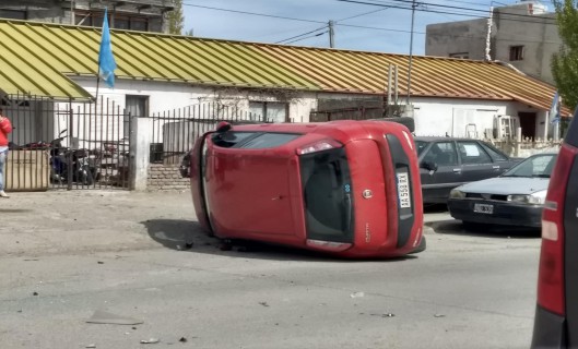 Rio Gallegos | As se manifest el esposo de la mujer que conduca el vehculo que colision contra un Fiat Punto que termin volcado del lado izquierdo esta maana en calle Laprida. Personal del Comando Radioelctrico y la tercera trabajaban en el lugar"