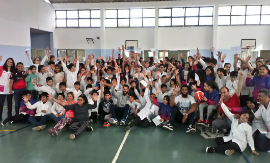 Rio Gallegos | Una vez ms y fiel a su filosofa institucional, el representante de Santa Cruz en la Liga Nacional de Bsquet, visit a la comunidad educativa de la Escuela "19 de Diciembre" de Ro Gallegos, en una jornada de risas, juegos y el mensaje multiplicador de realizar deportes, de la mano con los estudios, para los alumnos presentes.