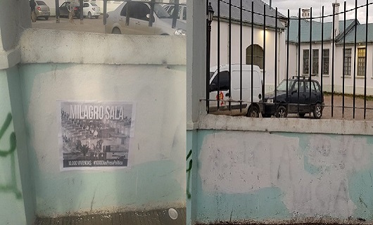 Rio Gallegos | Ante las operaciones mediticas manifiestas luego de la adhesin de este Colectivo a la Campaa Nacional 1000 Esquinas 1000 Das por la libertad de Milagro Sala manifestamos que la actividad fue realizada durante apenas una hora de reloj en todo el pas y se utilizaron materiales que se pueden retirar fcilmente, sin daar las paredes.