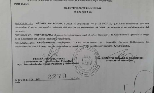 Rio Gallegos | Giubetich envi el veto del terreno donado con cargo a la Provincia, mediante el Decreto N 3279/2018 donde establece el Veto en Forma Total de la Ordenanza Sancionada N 8.126-HCD-18, mediante la cual se don con cargo el inmueble, perteneciente a la Municipalidad de Ro Gallegos, al Estado Provincial para la ampliacin del Hospital Regional.