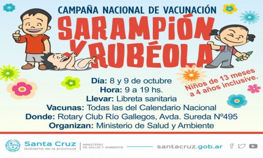 Rio Gallegos | La convocatoria se da en el marco de la Campaa de Nacional de Vacunacin de Sarampin y Rubola que comenz el pasado 1 de octubre y se extender hasta el 30 de noviembre prximo