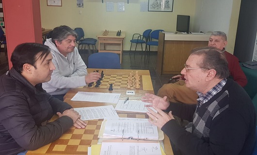 Rio Gallegos | El presidente de IDUV Pablo Grasso acompaado de Jos Luis Garrido mantuvo un encuentro con el presidente Juan Carlos Roldan y el tesorero de Juan Carlos Metaza de la Asociacin de Ajedrez Riogalleguense para trabajar en conjunto la medicin y el plano general del saln donde funciona la misma.