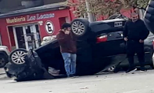 Rio Gallegos | Ocurri horas antes del medioda en la calle Santiago del Estero, en proximidad a la Avenida Kirchner. Una mala maniobra habra sido la causa que culmin con el choque de dos vehculos estacionados y un vuelco.