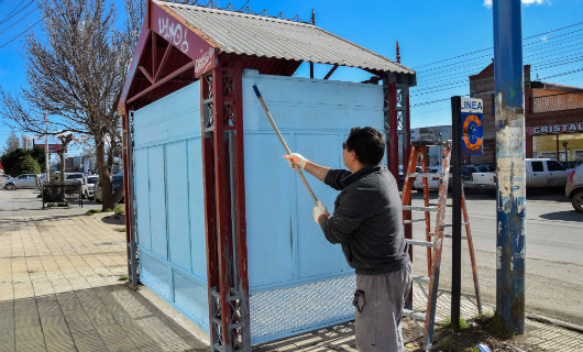 Rio Gallegos | El municipio de Ro Gallegos sigue con el Plan de Limpieza; y luego de un tiempo y tras pedido de los vecinos cansados de no tener devolucin en sus servicios bsicos, realizan refacciones en varios puntos de ciudad. En este caso de la garitas de colectivo, a pesar de la deficiencia del Transporte Pblico de Pasajeros de la ciudad que sigue cuestionado y sin solucin.