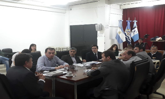 Rio Gallegos | Cerca de las diez de la maana, los referentes de la Intersindical se renen con el lder gremialista. Es en el marco de los recortes del presupuesto nacional 2019 a YCRT, con 2500 millones para la empresa estatal.