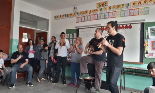 Los msicos se presentaron este fin de semana en escuelas primarias de Ro Gallegos y Ro Turbio en el marco actividades de la Diplomatura de Msica y cultura Popular que implementa el Consejo Provincial de Educacin para docentes de Santa Cruz. Proponemos poner a los chicos en el aula en funcin activa para que generen sus propias composiciones, afirm Fabin Lupica, docente y msico.