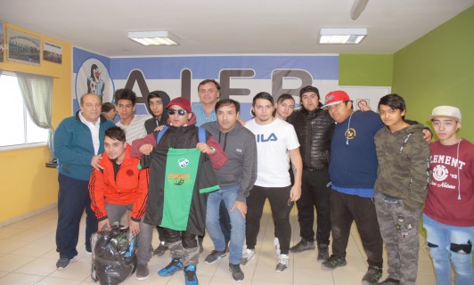 Rio Gallegos | En el da de ayer, integrantes de la Agrupacin Sumate entregaron indumentaria deportiva a distintos clubes que conforman la Liga de los Barrios. La entrega se realiz en las instalaciones de la cancha Enrique Pino, mientras se realizaba una nueva fecha del campeonato local.