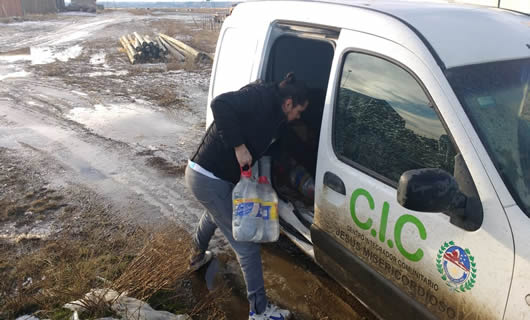 Rio Gallegos | En ese marco de acciones, esta maana, personal de Proteccin Civil estuvo en el Barrio Bicentenario visitando a los vecinos, para hacer entrega de agua potable en las viviendas.
