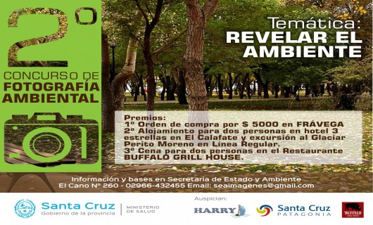 Rio Gallegos | La Secretara de Estado de Ambiente dependiente del Ministerio de Salud y Ambiente contina con la recepcin de trabajos para el 2 Concurso de Fotografa Ambiental hasta el da 31 de agosto de 2018. El objetivo es difundir y generar conciencia sobre el cuidado del medio ambiente y la importancia de hacer un buen uso de los espacios naturales, con el compromiso de toda la comunidad.