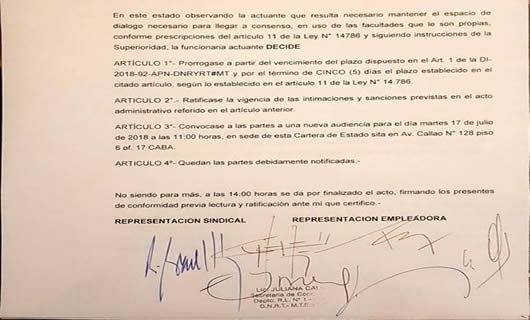 Rio Gallegos | Con la presencia del Secretario General del SOEM, Pedro Mansilla y el secretario Adjunto Oscar Couecar se realiz la audiencia de conciliacin convocada por el Ministerio de Trabajo de la Nacin. Se fij una nueva audiencia en Buenos Aires para el 17 de julio. Mientras que el viernes 13 de julio segn consta en el acta, se realizar la paritaria en el mbito natural.