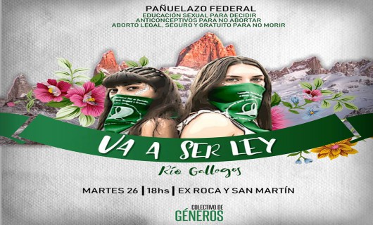 Rio Gallegos | El prximo martes, las mujeres de Ro Gallegos que estn a favor de la despenalizacin del aborto, se concentrarn en Kirchner y San Martn, para sumarse al pauelazo que se realizar en todo el pas.
