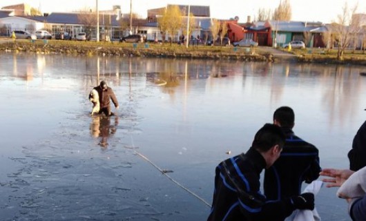 Rio Gallegos | Sucedi ayer por la tarde, en la Laguna de los Patos. El can no poda salir por sus propios medios y fue socorrido por el oficial, quien ingres para ayudarlo.