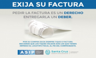 Rio Gallegos | Con el fin de promover la emisin de comprobantes de venta por parte de los sujetos que realicen operaciones con consumidores finales y as favorecer el cumplimento tributario y la proteccin de los derechos del consumidor, se estableci como obligatoria la exhibicin del afiche o calco exija su factura en los locales donde se realiza la venta de productos, locacin o prestacin de servicios.
