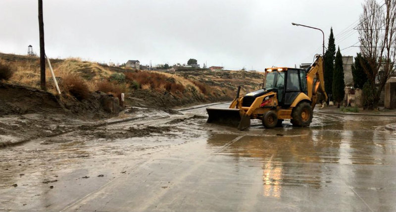 Rio Gallegos | Las intensas lluvias que azotaron a la localidad en estas ltimas horas dej inconvenientes sobretodo de transitabilidad en muchos sectores de la ciudad; desde los primeros minutos, personal municipal y con el acompaamiento de privados, comenzaron con diversas tareas para evitar mayores problemas.