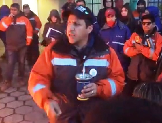 Rio Gallegos | La medida de fuerza se mantiene hasta que no se notifique a travs de una disposicin que todos los compaeros sern reintegrados, as lo manifest uno de los trabajadores de YCRT en el marco de la movilizacin que se est llevando a cabo en estos momentos en las puertas de la administracin de la empresa.