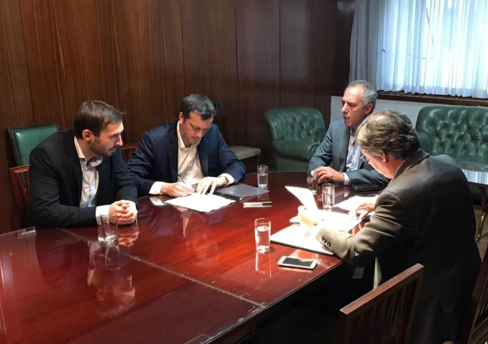 Rio Gallegos | El ministro de Economa, Finanzas e Infraestructura Ignacio Perincioli, tramit y firm esta tarde el convenio de asistencia financiera del Programa de Convergencia Fiscal con el Director Ejecutivo del Fondo Fiduciario para el Desarrollo Provincial dependiente del Ministerio de Hacienda nacional, Fabin Dallo para obtener el desembolso para el pago del 8% acordado con los docentes en actividad, correspondiente a los meses de enero, febrero y marzo.